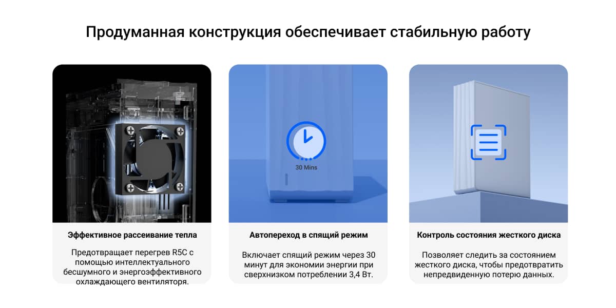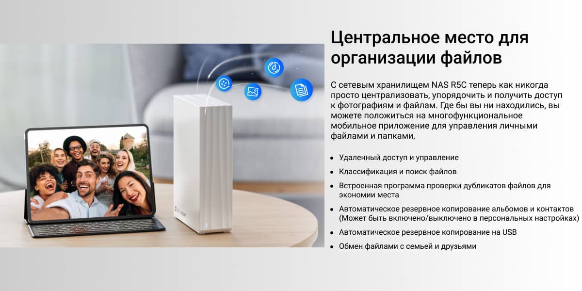 Функциональность ориентирована на управление и совместное использование: поддерживаются протоколы SAMBA, AFP, DLNA для доступа к файлам с компьютера и медиаплееров, реализованы многопользовательские зашифрованные «личные пространства» с отдельными паролями и автоматическое резервное копирование фото и контактов с мобильных устройств.