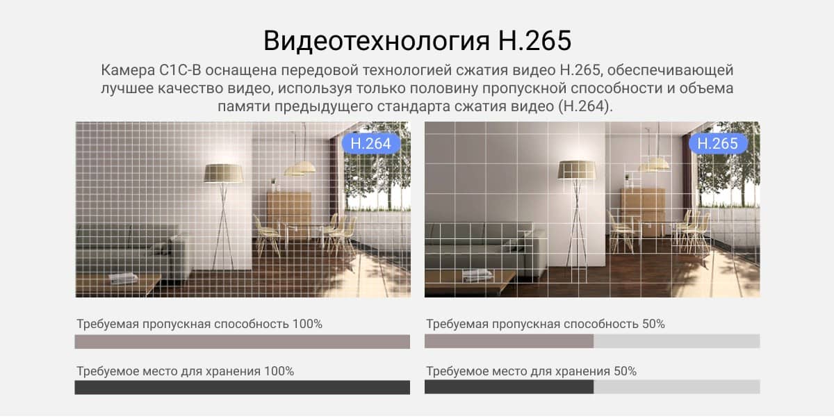 Корпус C1C-B рассчитан исключительно на внутреннюю установку, отличается компактными габаритами и нейтральным дизайном, что позволяет размещать камеры на стене или потолке без визуальной перегрузки интерьера. Поддержка кодека H.265 снижает объём видеопотока и делает долговременную запись более рациональной с точки зрения использования дискового пространства.