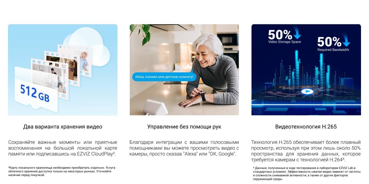 EZVIZ CB1 — автономная камера, созданная для контроля домашнего пространства без зависимости от проводов и сложной инфраструктуры. Она ориентирована на пользователей, которым важно получать стабильное изображение и мгновенный доступ к событиям при минимальном вмешательстве в интерьер и энергопитание.