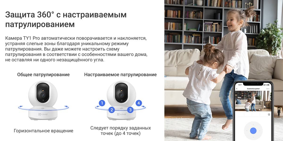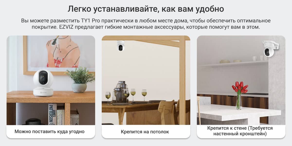 Камера EZVIZ TY1 Pro 2K закрывает задачи круглосуточного контроля комнаты с минимальными «слепыми зонами», позволяет получать читаемую картинку на расстоянии до нескольких метров в ночное время, обеспечивает двустороннюю коммуникацию и локальное хранение большого объёма данных. Эти параметры дают основу для сравнения при выборе поворотного решения.