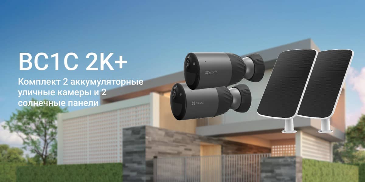 Комплект из двух уличных IP-камер EZVIZ BC1C 4 Мп (2,8 мм) с солнечными панелями рассчитан на автономное видеонаблюдение в местах, где прокладка кабелей невозможна или нецелесообразна. Система изначально спроектирована как полностью беспроводная, что снимает ограничения по выбору точки установки и снижает требования к инфраструктуре объекта.
