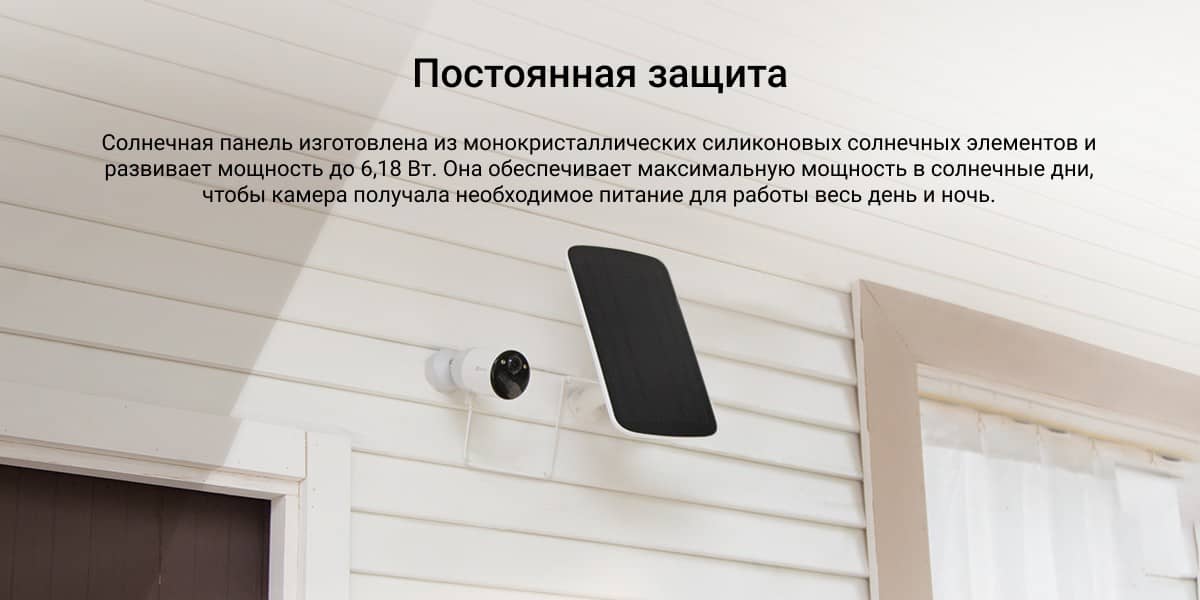 Ключевая особенность комплекта — автономное питание. Встроенный аккумулятор камеры работает в связке с отдельной солнечной панелью, поддерживая заряд при регулярном дневном освещении и корректном размещении панелей. На практике это позволяет системе функционировать месяцами без ручной подзарядки даже при активных сценариях фиксации событий. Камера переходит в энергосберегающий режим ожидания и активируется только при обнаружении движения, что напрямую влияет на реальное время работы. Отсутствие силовых кабелей минимизирует уязвимые точки и упрощает монтаж на уже благоустроенных объектах.