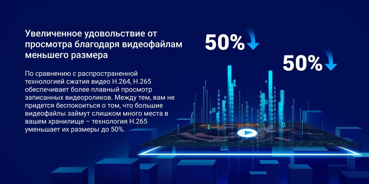 Ночная съёмка реализована в двух режимах: цветное ночное видение с двумя прожекторами и чёрно-белое IR-видение, рабочая дальность обоих режимов до 15 м. Минимальная освещённость 0,01 люкс при F2.0 и автоусилении гарантирует, что камера остаётся информативной при тусклом уличном освещении. Сжатие H.265 уменьшает объём потока и делает длительную запись более реалистичной при ограниченной пропускной способности.