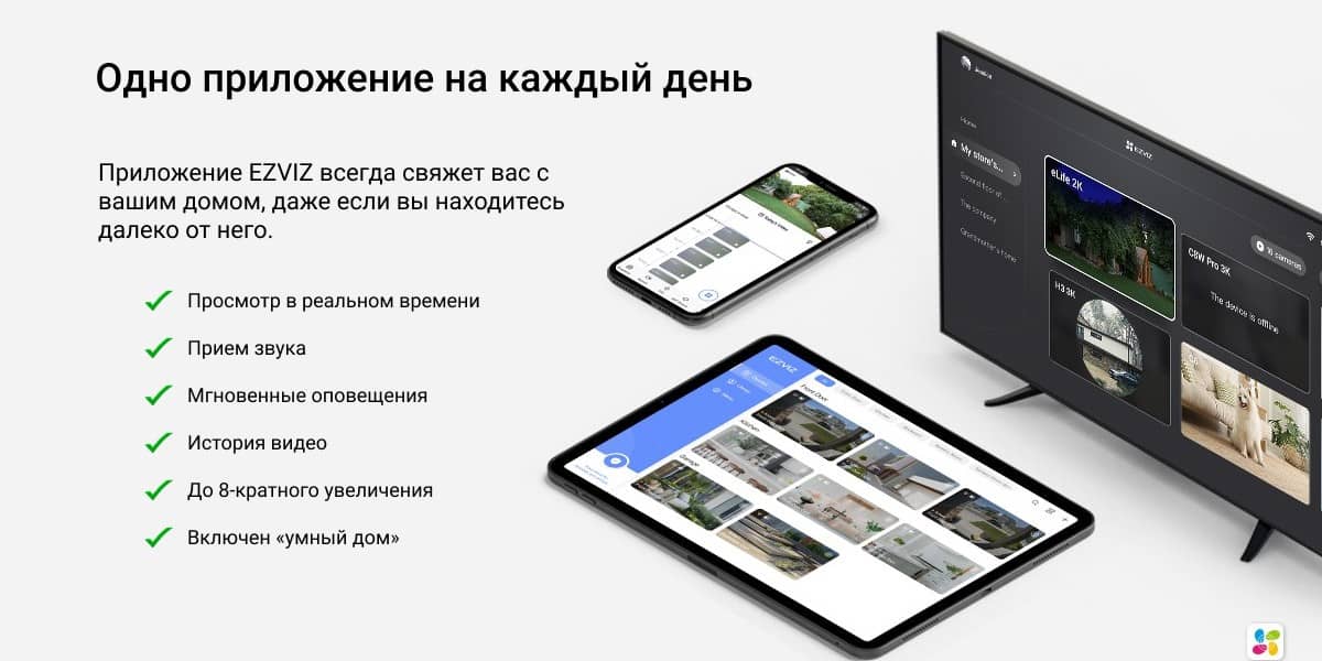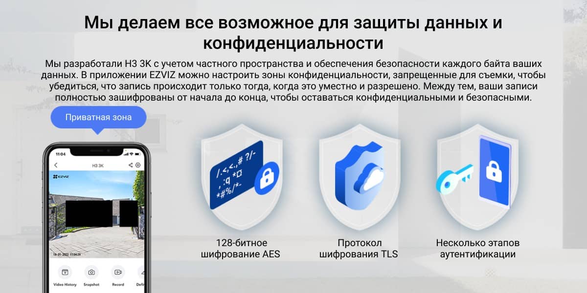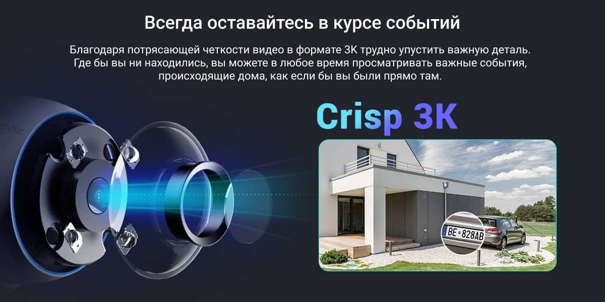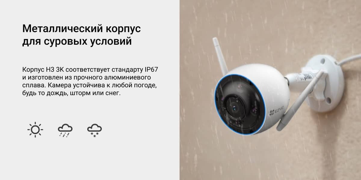 EZVIZ H3 3K 4 мм — уличная «bullet» камера, сконструированная для ситуаций, где важен прицельный охват и читаемая детализация на средней дистанции. Матрица 1/2.7" CMOS формирует изображение 2880×1620 при частоте до 30 кадр/с. Объектив 4 мм, светосила F2.0, горизонтальный угол 80° и диагональный около 95° — такой оптический набор позволяет получать более читабельные фрагменты при приближении.