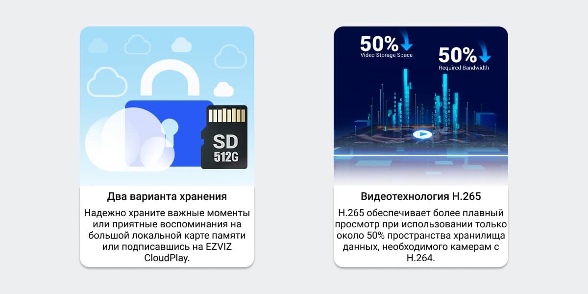 H.264 обеспечивает высокое качество записи при умеренном сжатии, идеален для простых задач. H.265 сокращает размер файлов до 50%, сохраняя качество, экономя место и уменьшая нагрузку на сеть, полезно для высокого разрешения и длительного архивирования.