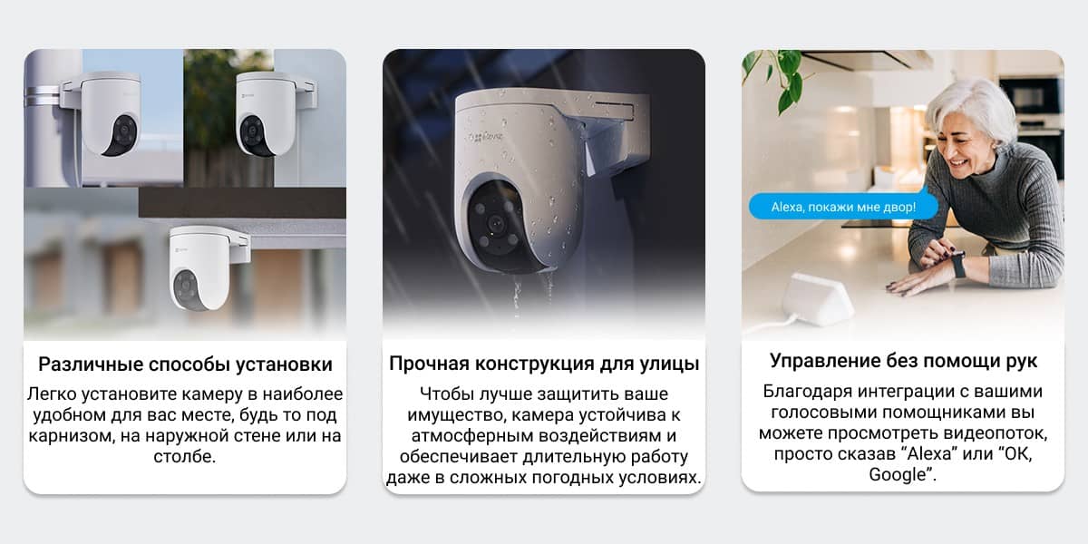 Внутренние модели более компактные и эстетичны, просты в установке и оснащены приватным режимом, идеальны для помещений. Наружные имеют активную защиту и защищены от погодных воздействий, что гарантирует надежную работу на открытом воздухе.