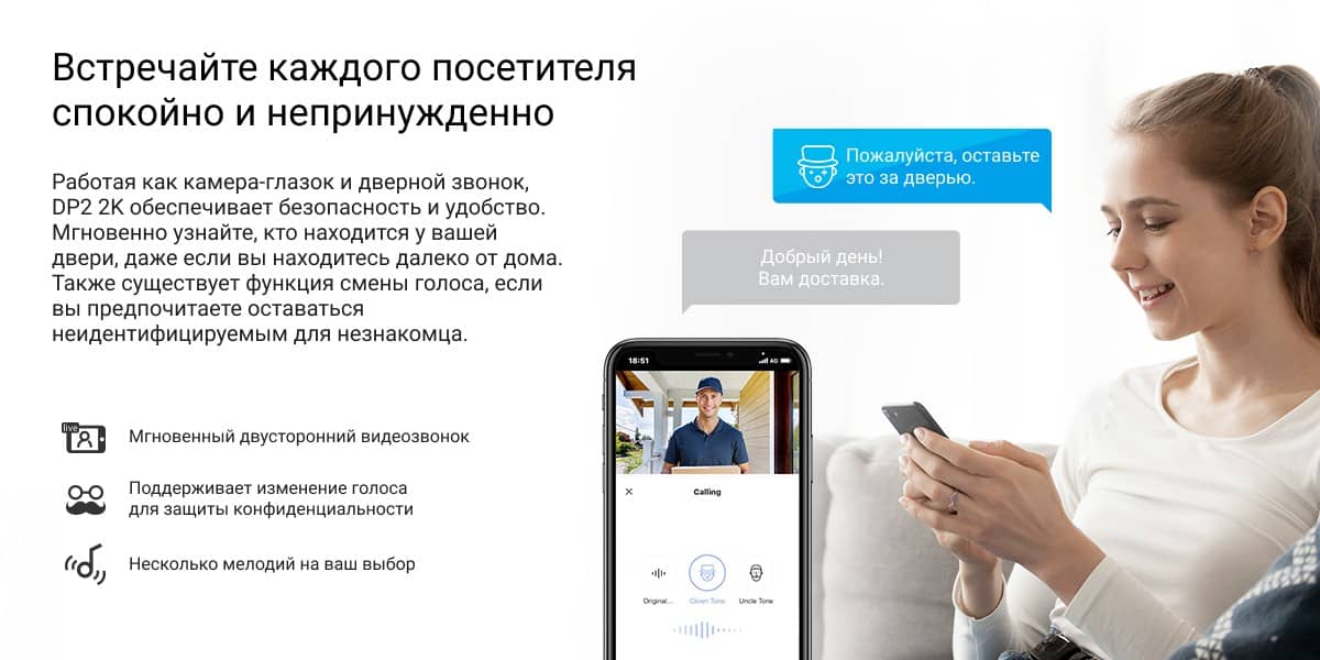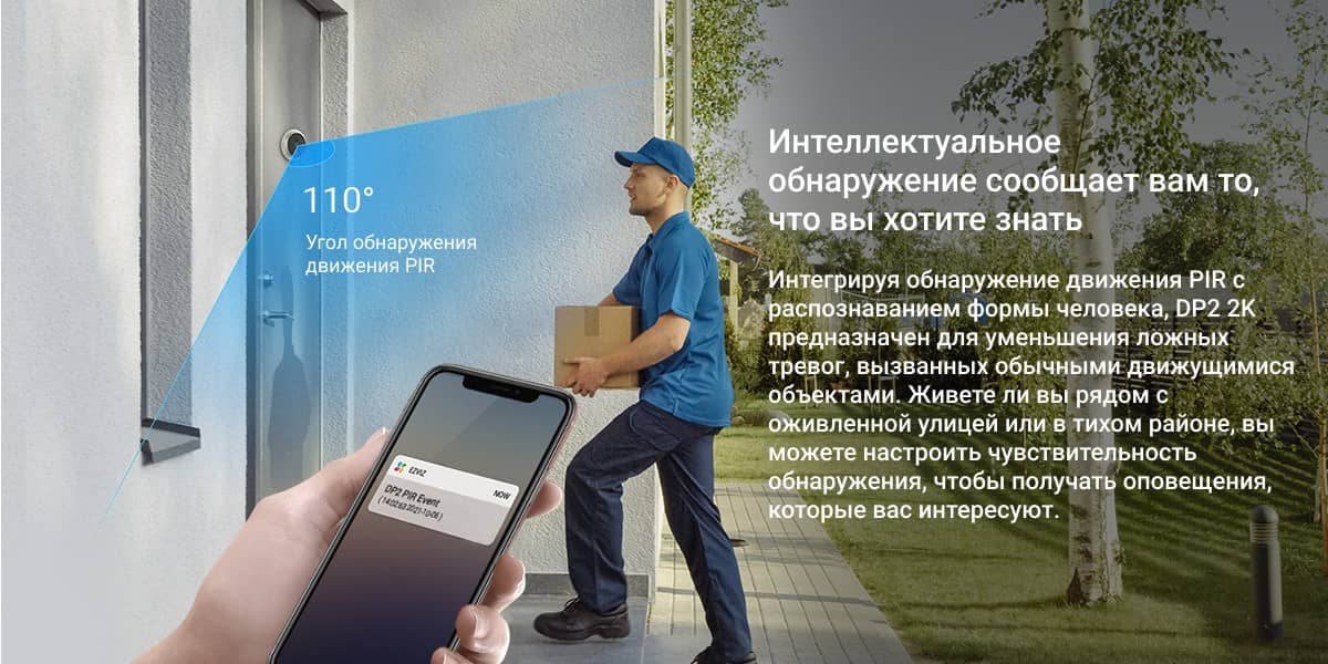Функционал: двухсторонняя аудиосвязь, встроенный звонок с несколькими мелодиями, настраиваемые зоны тревоги и умная фильтрация событий по человеческой активности — это снижает число ложных оповещений и упрощает повседневную эксплуатацию.