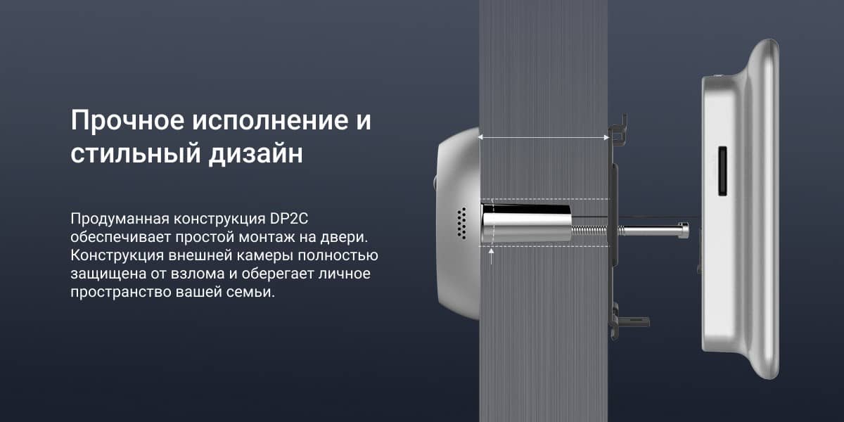 С технической точки зрения DP2C — это решение для тех, кому важно стабильное видео у входа, автономность без проводов, возможность локального хранения и большой внутренний экран, на котором можно видеть, кто на пороге, без необходимости доставать телефон. Такой формат закрывает потребность в «умном глазке» с хорошим обзором, долго работающем аккумулятором и удобством взаимодействия с посетителями.